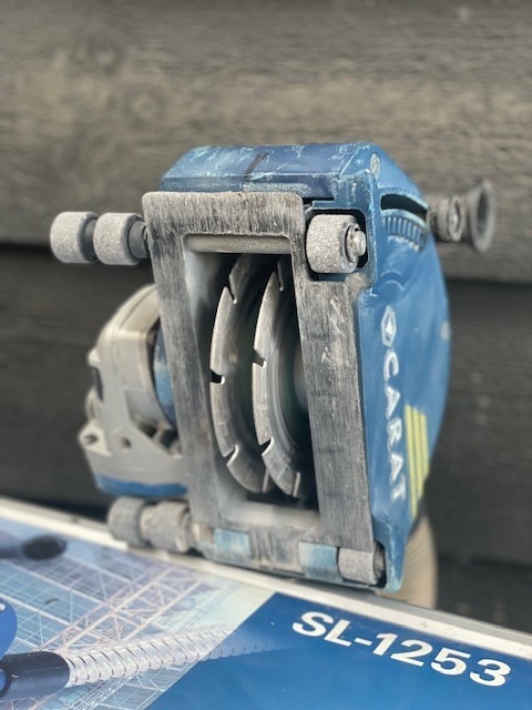 De Carat SL-1253 Dustec sleuvenzaagmachine wordt verhuurd met 2 stuks Ø125 mm universele diamantzagen en een handige transportkoffer.