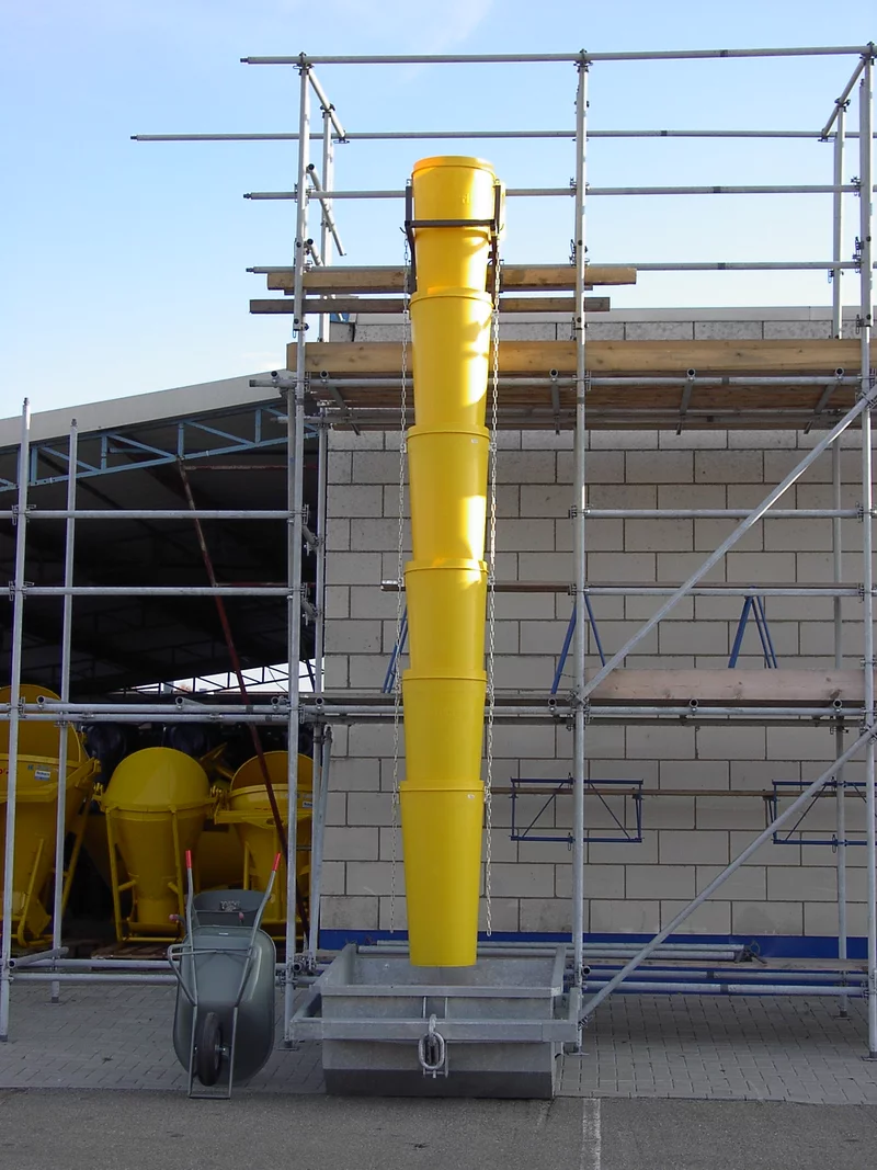 De kunststof stortkoker wordt gebruikt voor het gemakkelijk afvoeren van verschillende afvalstoffen van 1 of meerdere verdiepingen. Dankzij de kettingen kan de koker onder verschillende hoeken worden gemonteerd.