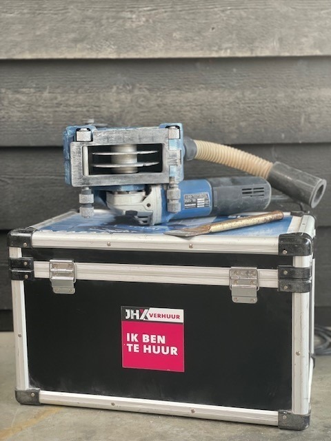 De Carat SL-1253 Dustec sleuvenzaagmachine wordt verhuurd met 2 stuks Ø125 mm universele diamantzagen en een handige transportkoffer.